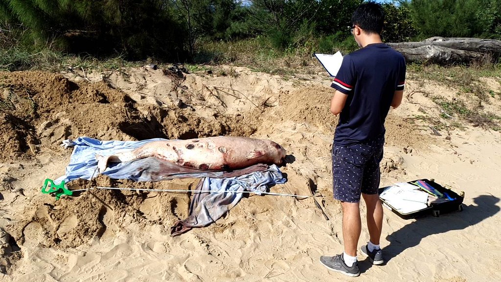 中華鯨豚協會於24日派員到場查看後,判定為全球少見的侏儒抹香鯨,在台灣是屬於海洋保育類物種,死亡原因待查,經解剖查看後,將鯨體掩埋於鹽寮沙灘。