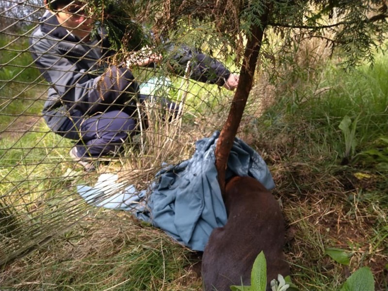 玉山國家公園塔塔加園區,日前有一隻山羌不慎卡住樹木保護網,山羌受困後極力要掙脫,不料卻愈纏愈緊,由於山羌受到驚嚇可能因過度緊迫而死亡,幸好當時有遊客發現,熱心通報求援,遊客中心立即派員協助,到場先用被單蓋住山羌頭、眼,待山羌不再躁動,再剪除圍網束縛,落難山羌最後順利脫困,幸運逃過「纏死」劫難。