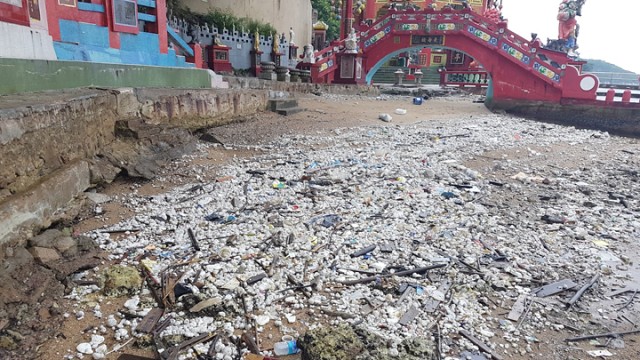 2017年8月初貨船洩漏油污事故後,淺水灣一帶的情況。港大理學院提供圖片,資料照片。
