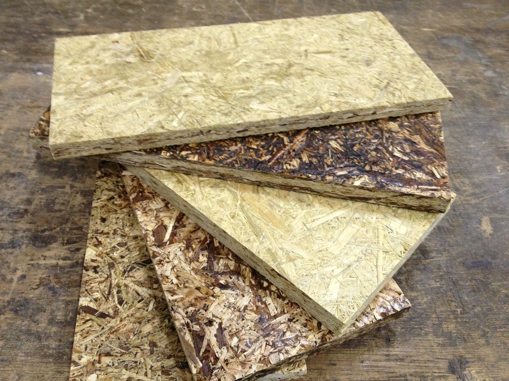 王升陽表示,研究團隊利用相思樹樹皮的萃取物,取代化石原料酚單元來合成出安全無游離甲醛的膠合劑,並收集加工現場取得的邊皮材、桂竹廢材,透過簡單的機械加工及化學處理,再依不同的成板組合方式熱壓成板材,利用超音波檢測方式評估不同組合型式。