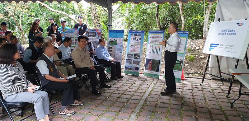 交通部長林佳龍17日視察卓蘭地區石虎棲地,宣示啟用路殺預警系統。照片提供:公路總局。
